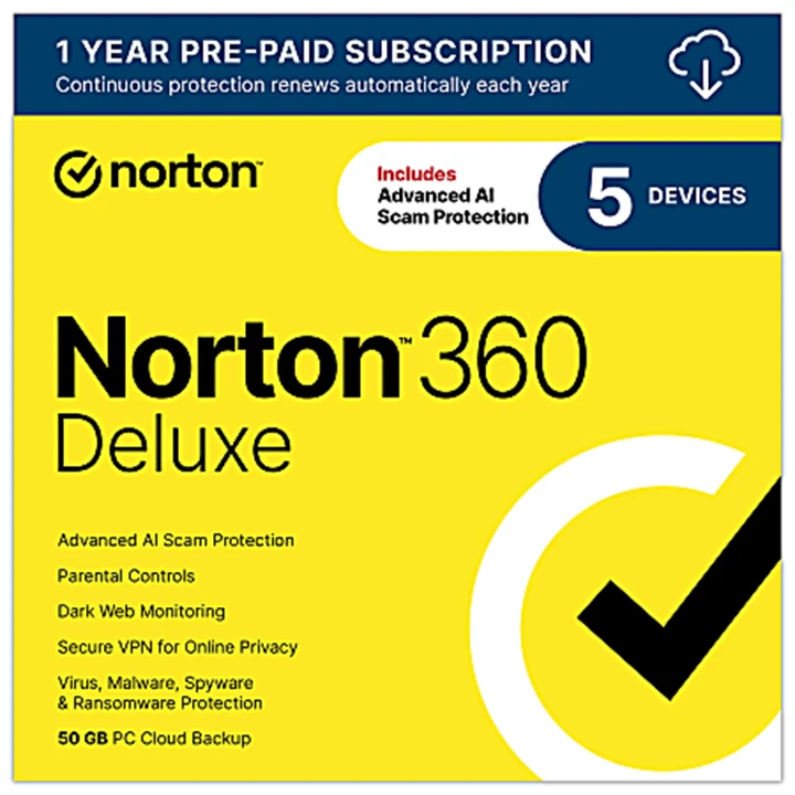 Norton™ 360 Deluxe, For 5 Devices, 1-Year Subscription